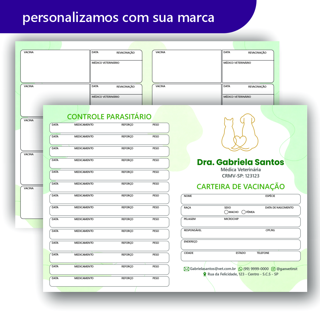 A carteira de vacinação ideal para clínicas, hospitais, consultórios veterinários e atendimentos domiciliares. Produzida com materiais de alta qualidade, é resistente, prática e transmite confiança aos tutores de pets.