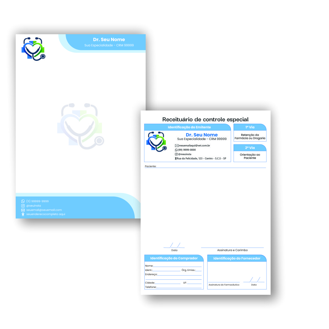 Kit Receituário Personalizado Simples + Receituário Controlado 2 vias – A5 (14,8 x 21 cm)
