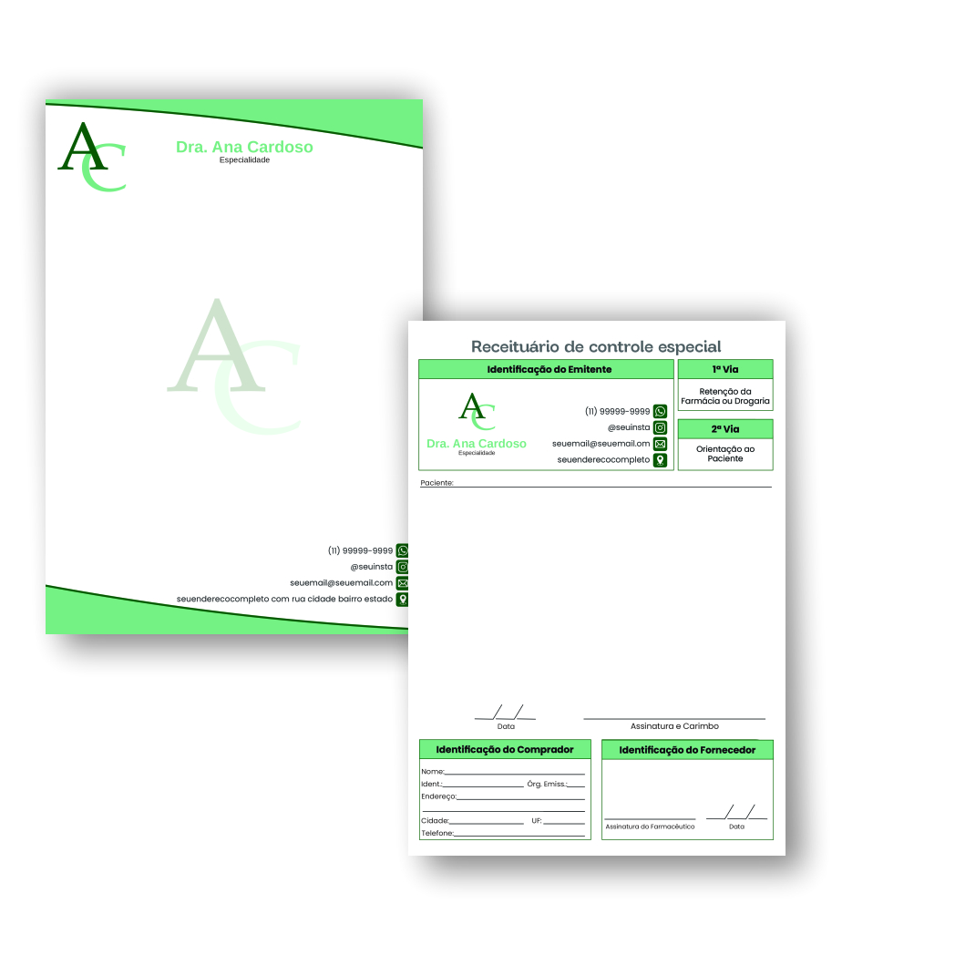 Kit Receituário Personalizado Simples + Receituário Controlado 2 vias – A5 (14,8 x 21 cm)