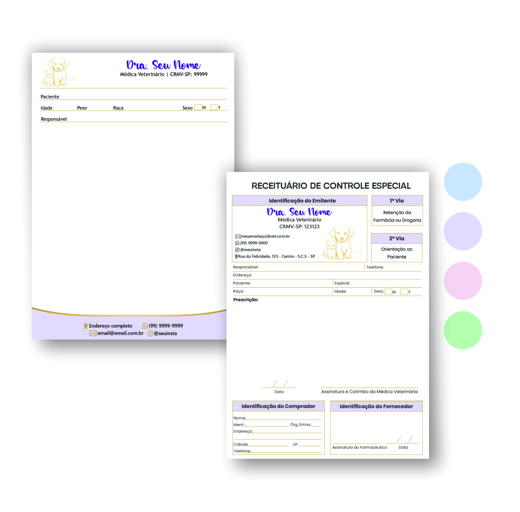 🐾 Kit Receituário Veterinário Personalizado Simples + Receituário Controlado 2 vias – A5 (14,8 x 21 cm)