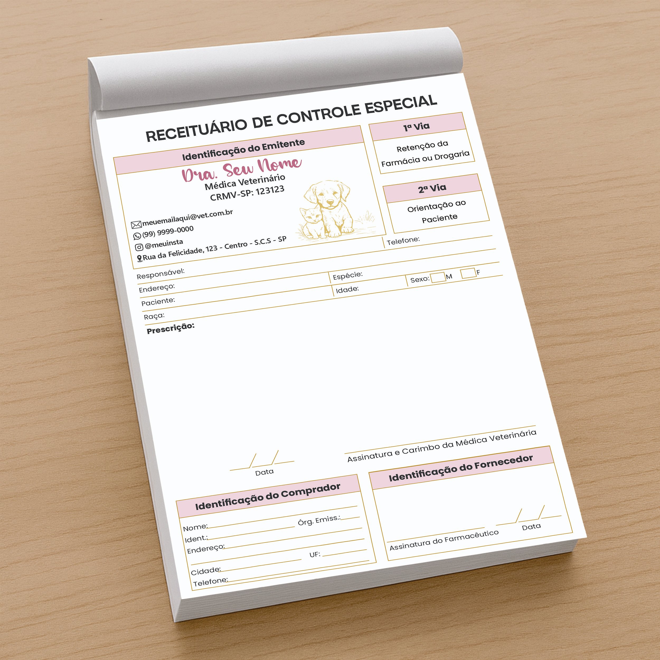Garanta receituários que valorizam sua imagem profissional e transmitem a confiança que seus clientes merecem. Produzimos com materiais de alta qualidade, unindo resistência, estética e praticidade para o dia a dia veterinário.