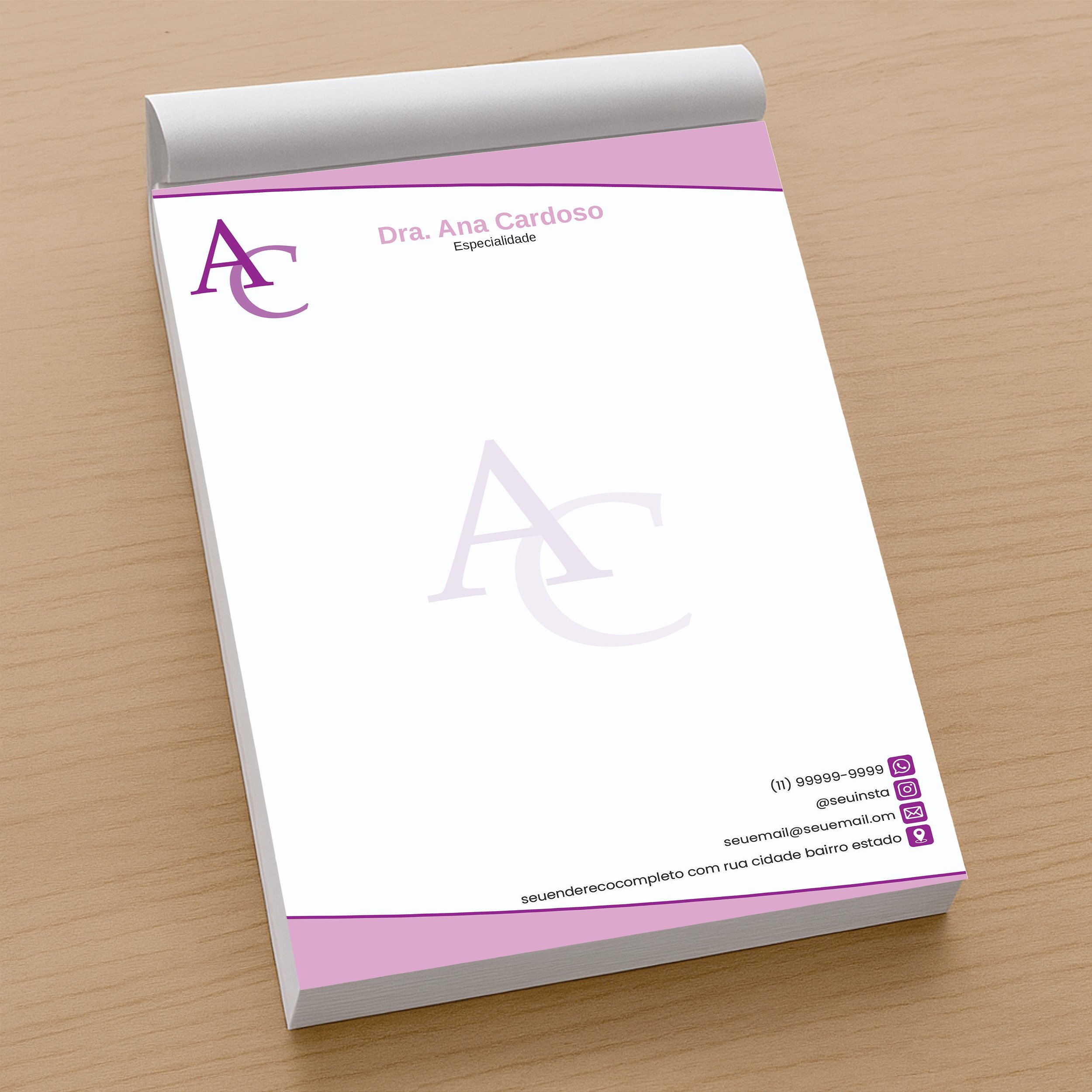 Receituário Médico Personalizado Todas as Especialidades Lilás e Rosa
